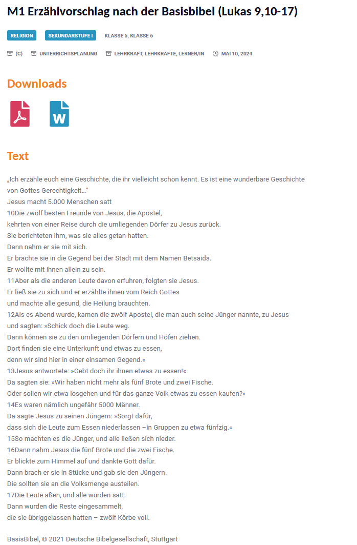 Konkret würden wir die Bibelpassagen den Lehrkräften auf unserer Seite gerne sowohl direkt auf der Website als auch als Download anbieten. Wäre das so in Ordnung?