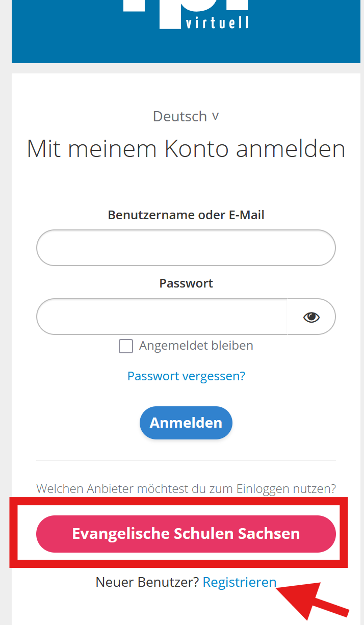 Simone hat mich darauf hingewiesen dass einge Nutzer Probleme beim Registrieren haben vorallem das finden des Registrieren buttons und die Verwirrung durch den Evangelische Schule Sachsen button sorgt dafür dass sich wengier Potzenzielle Nutzer registieren.
